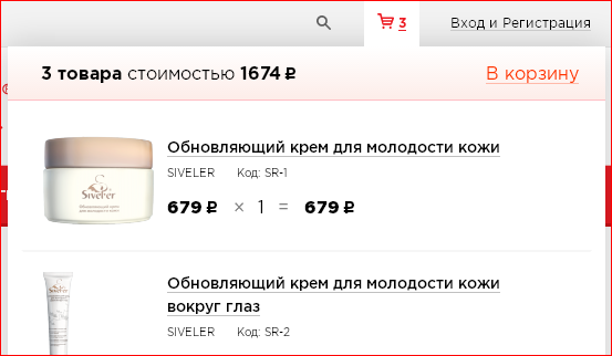 Пока вы выбираете товары, ваша корзина регистрирует изменения автоматически. В правом верхнем углу экрана можно посмотреть количество средств, которые уже помещены в вашу корзину. Если требуется посмотреть детали вашего заказа, наведите курсор мышки или нажмите на значок «Корзина». Перейдя в корзину, вы можете изменить количество, добавить или убрать средства.